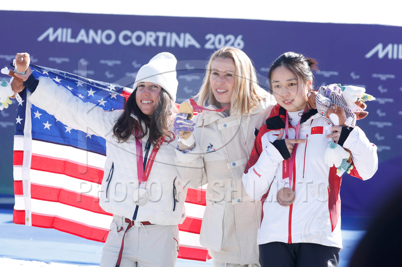 パラ スノーボード 女子 クロス LL2 表彰式