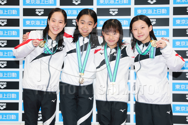 女子 10歳以下 4x50m フリーリレー 表彰式